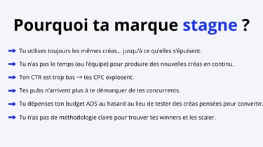 👉 Pendant que tu repousses, d’autres marques explosent leur CA avec de meilleures créas